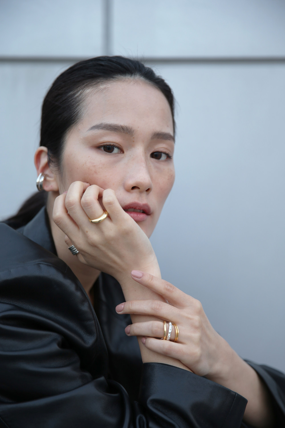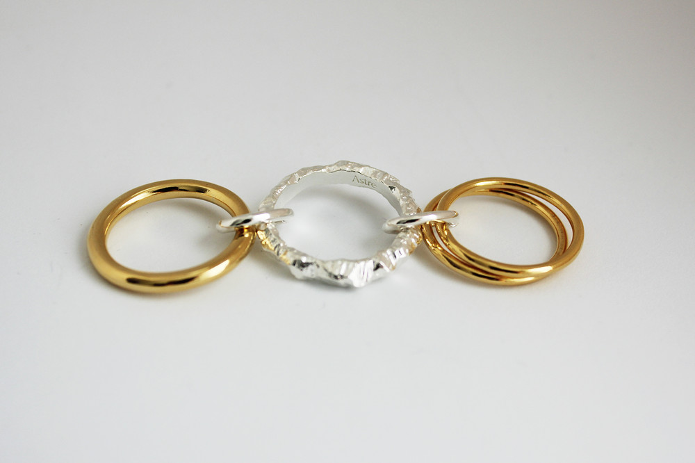 암석의 울퉁불퉁한 쉐입을 본따 제작된 링을 중앙에 배치한 총 4가지링이 오링에 연결되어 있습니다